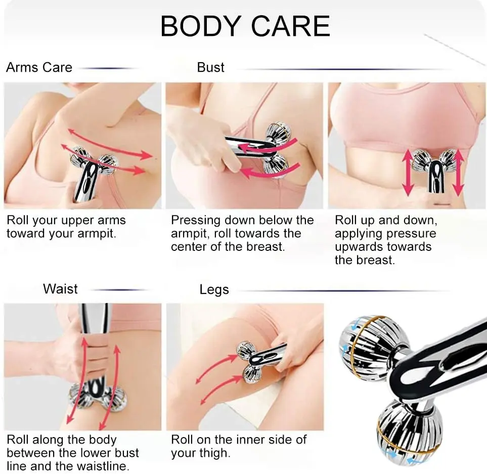 - Cuidado facial: ruede de abajo hacia arriba junto con el contorno de la cara para reafirmar la piel de la boca, las mejillas y la cara. Tenga cuidado al hacer un esfuerzo excesivo.