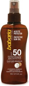 1. Babaria – Aceite Protector Solar SPF50 UVA-UVB, Acelerador del Bronceado