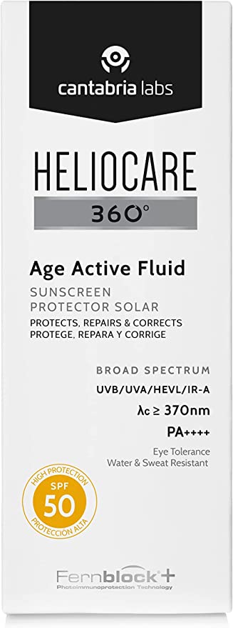 Heliocare 360° Age Active Fluid Spf 50, Crema Solar Facial, Ultraligero, con Triple Complejo Antiedad, Previene el Fotoenvejecimiento, 50Ml, Sin Color