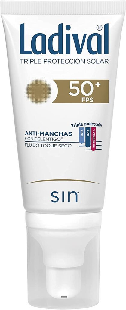 8. Ladival Crema solar facial acción antimanchas con deléntigo toque seco