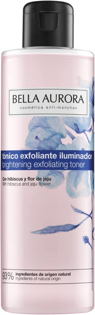 El Tónico Exfoliante de Bella Aurora es un tónico facial que elimina de manera eficaz cualquier resto de maquillaje o impurezas, al tiempo que lleva a cabo sobre el cutis una suave exfoliación que le aporta luminosidad a la piel.